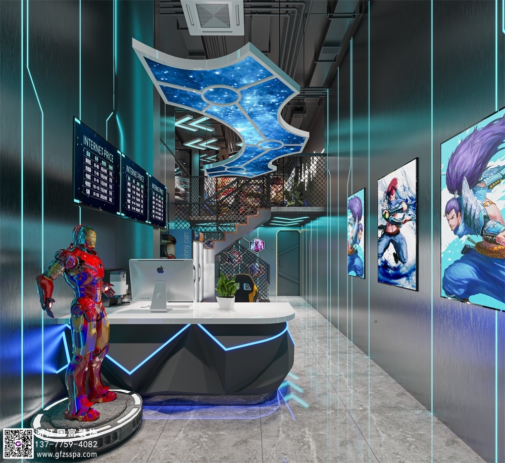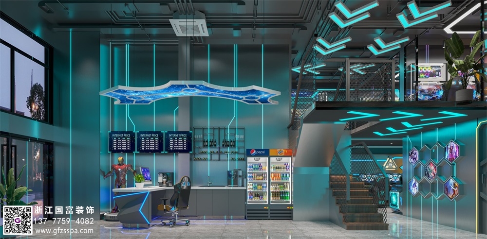 英雄潮流網(wǎng)咖裝修設(shè)計案例效果圖